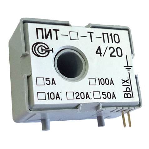 ПИТ-_-Т-4/20-П10 - преобразователи измерительные переменного тока с частотой 50 Гц. Выпускается для измерения тока в различных диапазонах : от 0 до 5 Ампера, ... , от 0 до 100 А:
