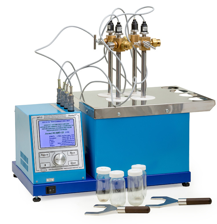 Аппарат лабораторный АИП-21 (комплектация К) является испытательным оборудованием настольного типа и предназначен для определения химической стабильности автомобильных бензинов методом индукционного периода (ИП) в соответствии со стандартами: